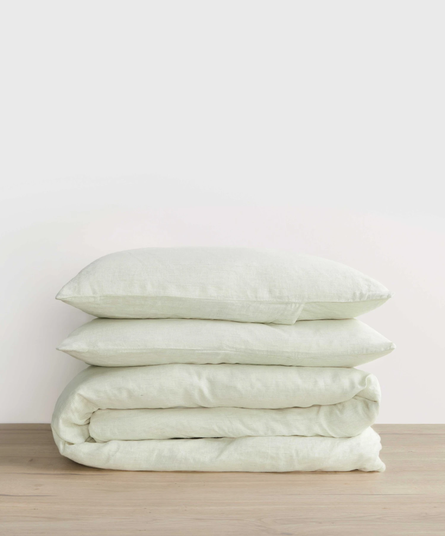 Finished with a mother of pearl summary closure, each Duvet Cover Set is crafted from 100% linen, pre-washed for softness.