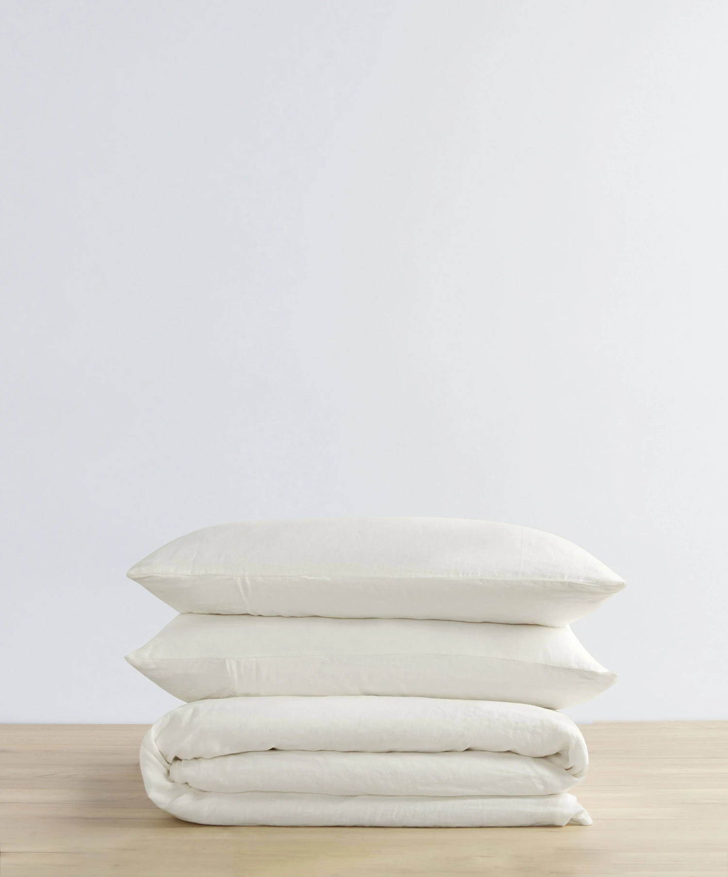Finished with a mother of pearl summary closure, each Duvet Cover Set is crafted from 100% linen, pre-washed for softness.