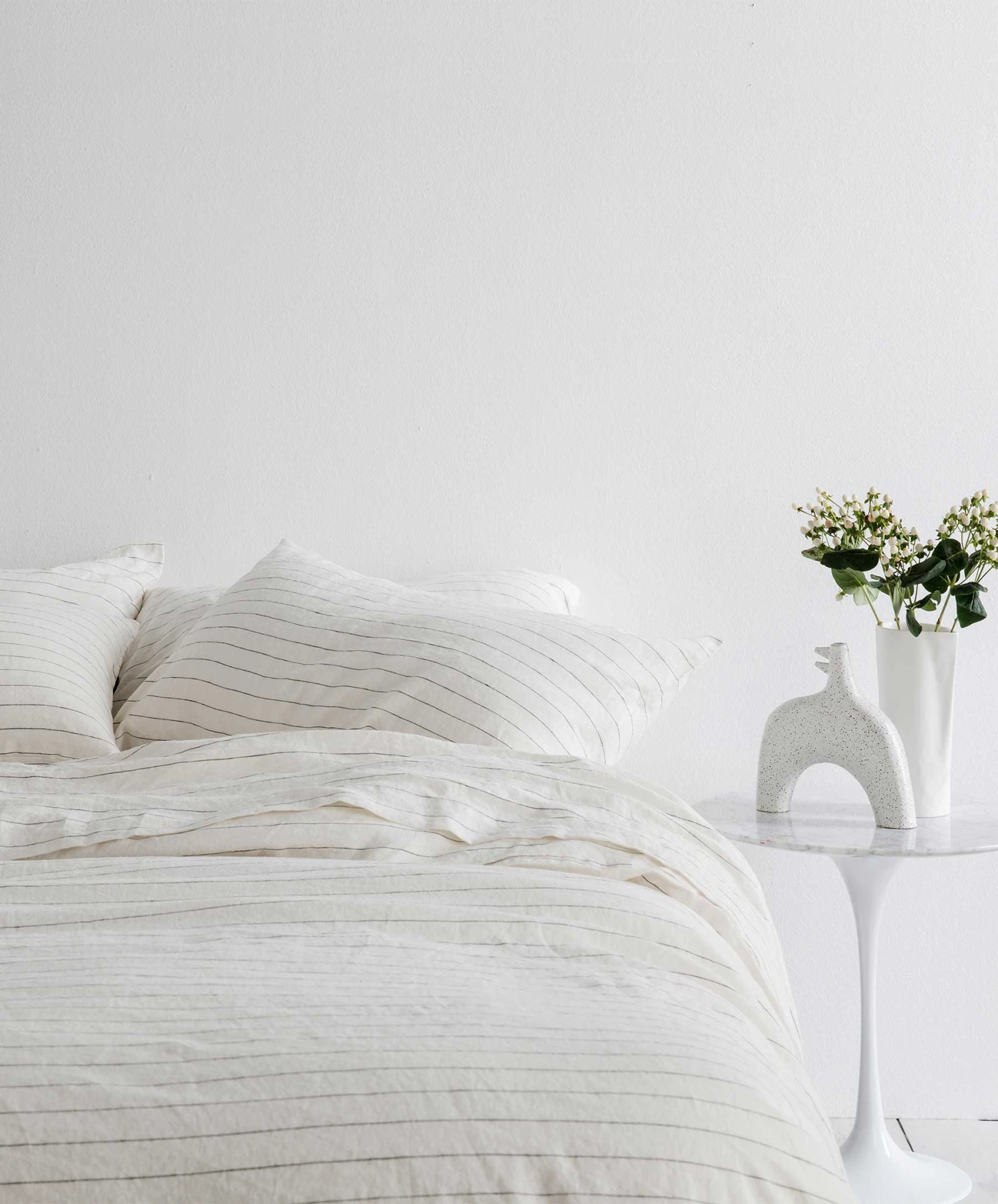 Finished with a mother of pearl summary closure, each Duvet Cover Set is crafted from 100% linen, pre-washed for softness.