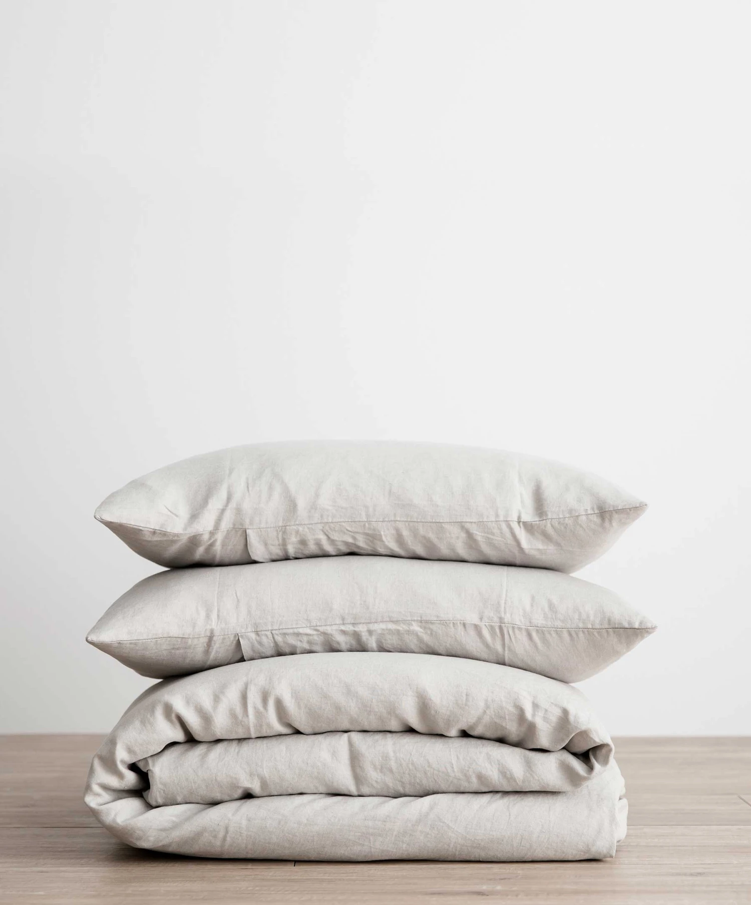 Finished with a mother of pearl summary closure, each Duvet Cover Set is crafted from 100% linen, pre-washed for softness.