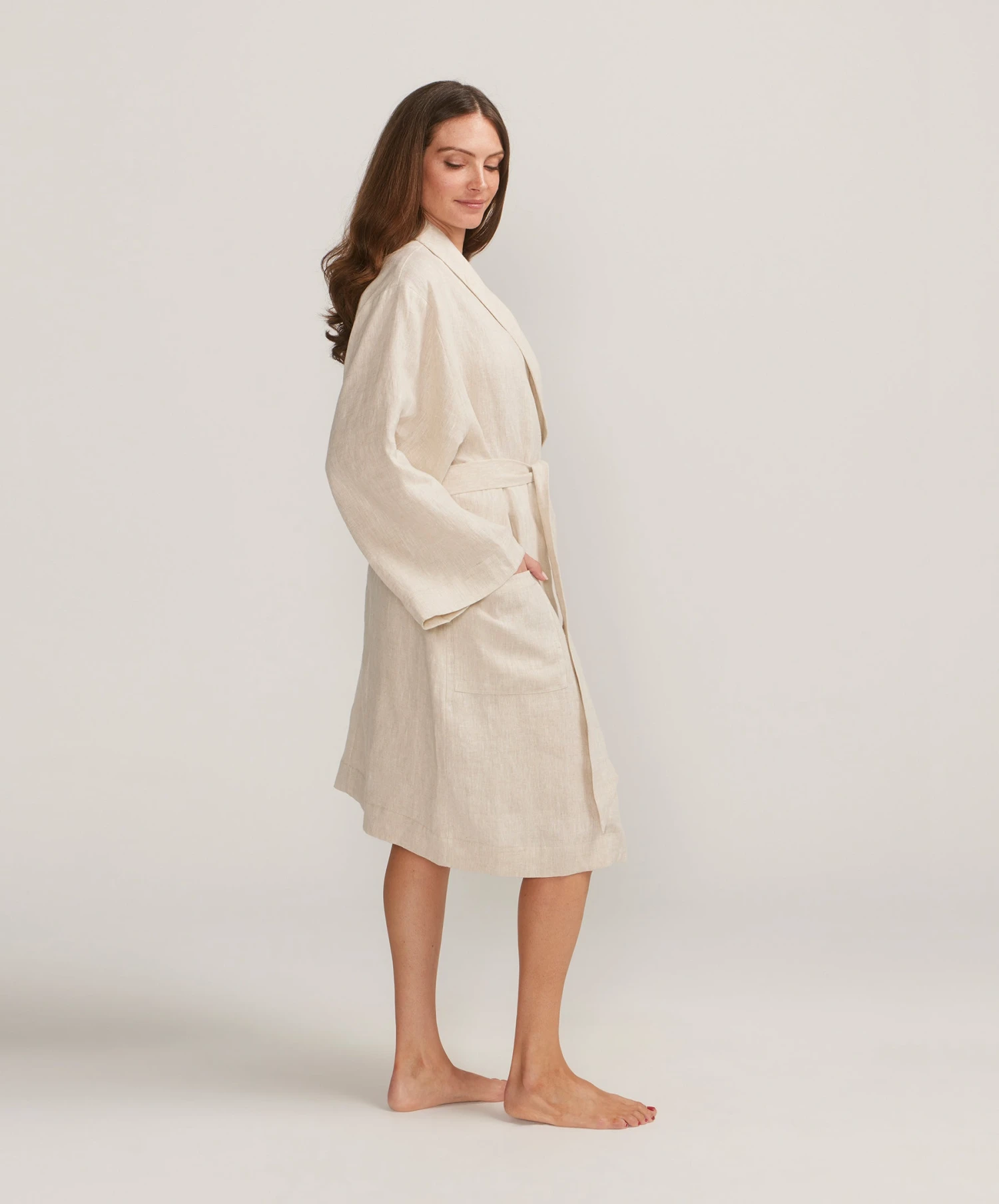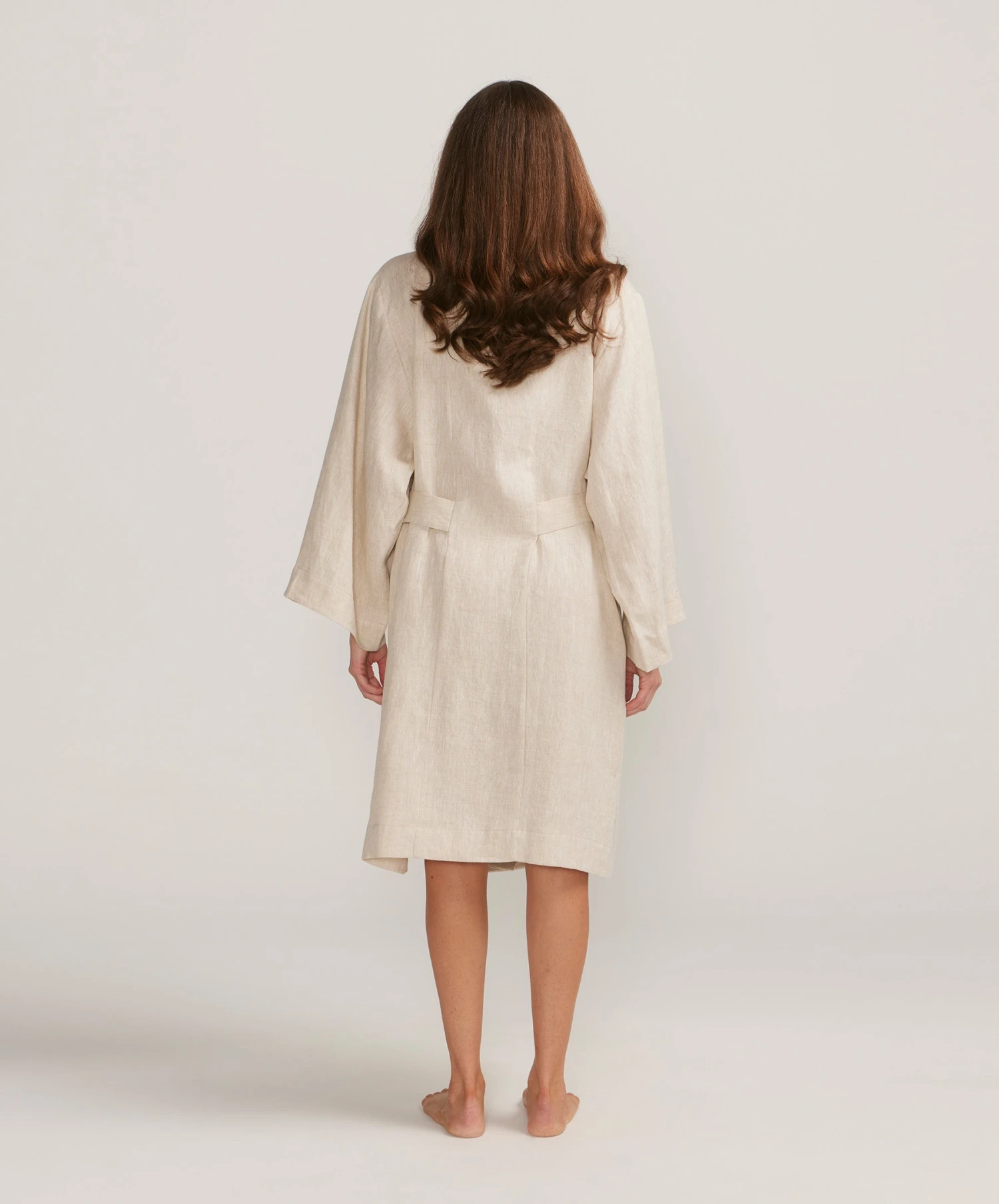 Designed to become part of your daily rituals. Our luxurious linen robe features a convenient sewn-in waist tie, extra wide sleeves and spacious pockets. Made from OEKO-TEX® certified linen and available in two sizes. Our model is wearing the S/M size.