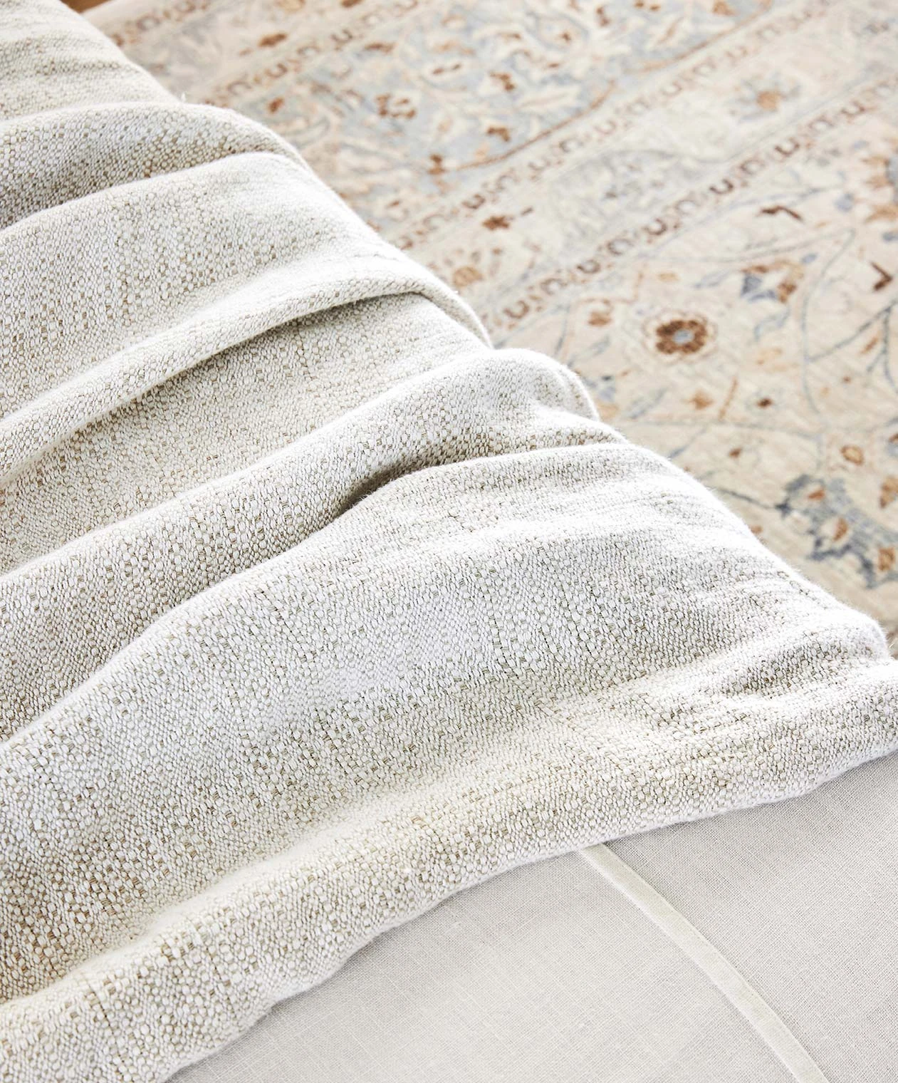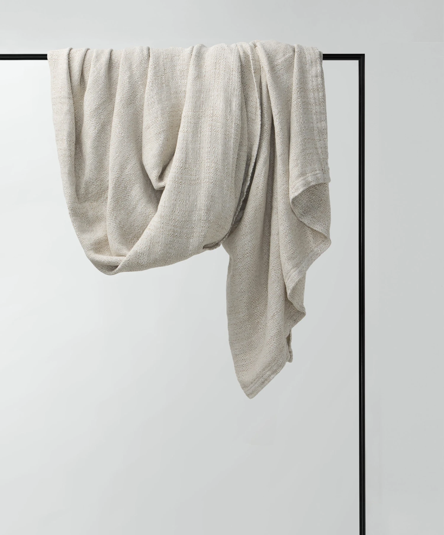 Expertly crafted on a Jacquard loom in Portugal, the Luna Throw features a delicate solid pattern made of thick, dense yarns.