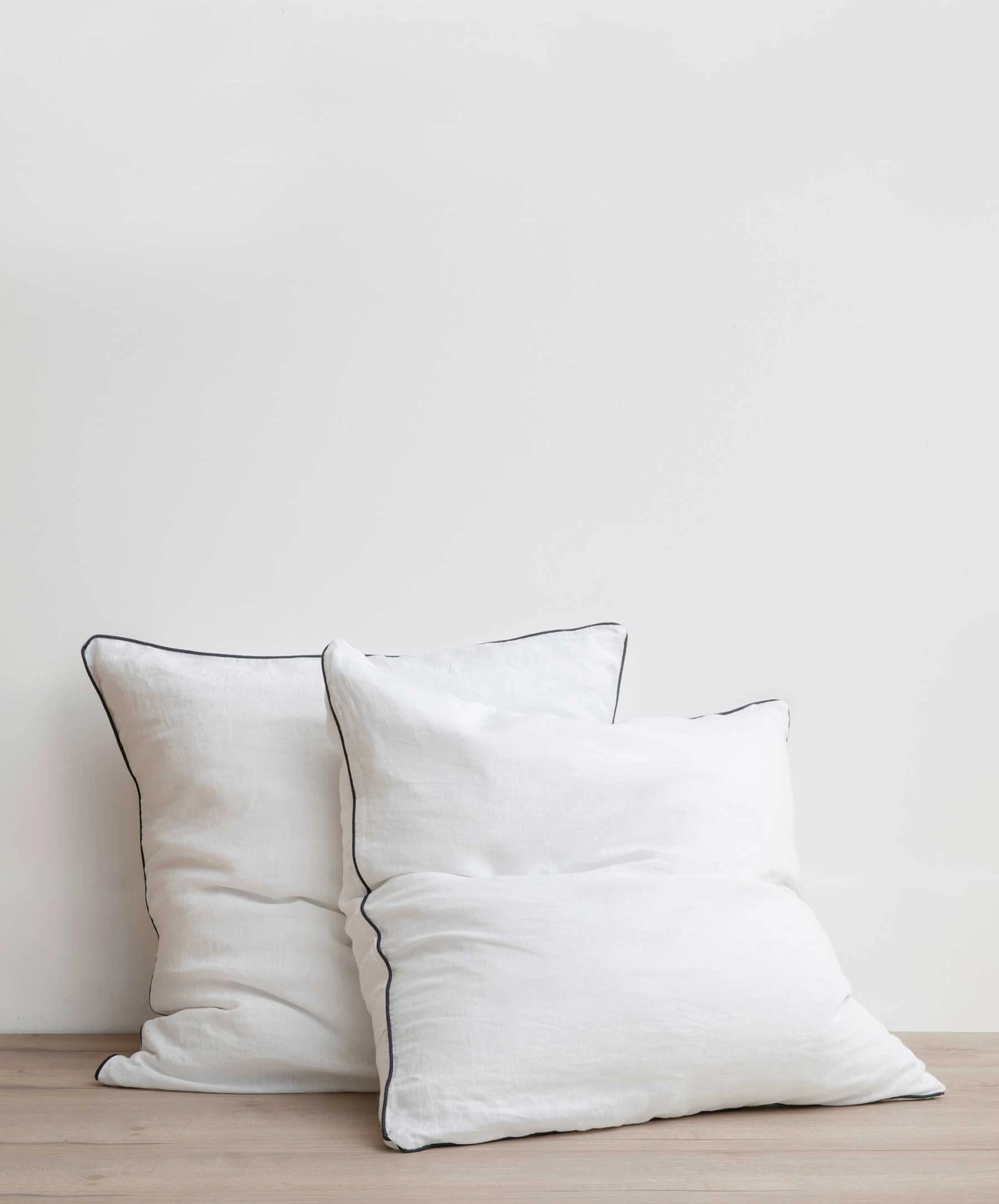 Set Of 2 Piped Linen Euro Pillowcases – White And Navy